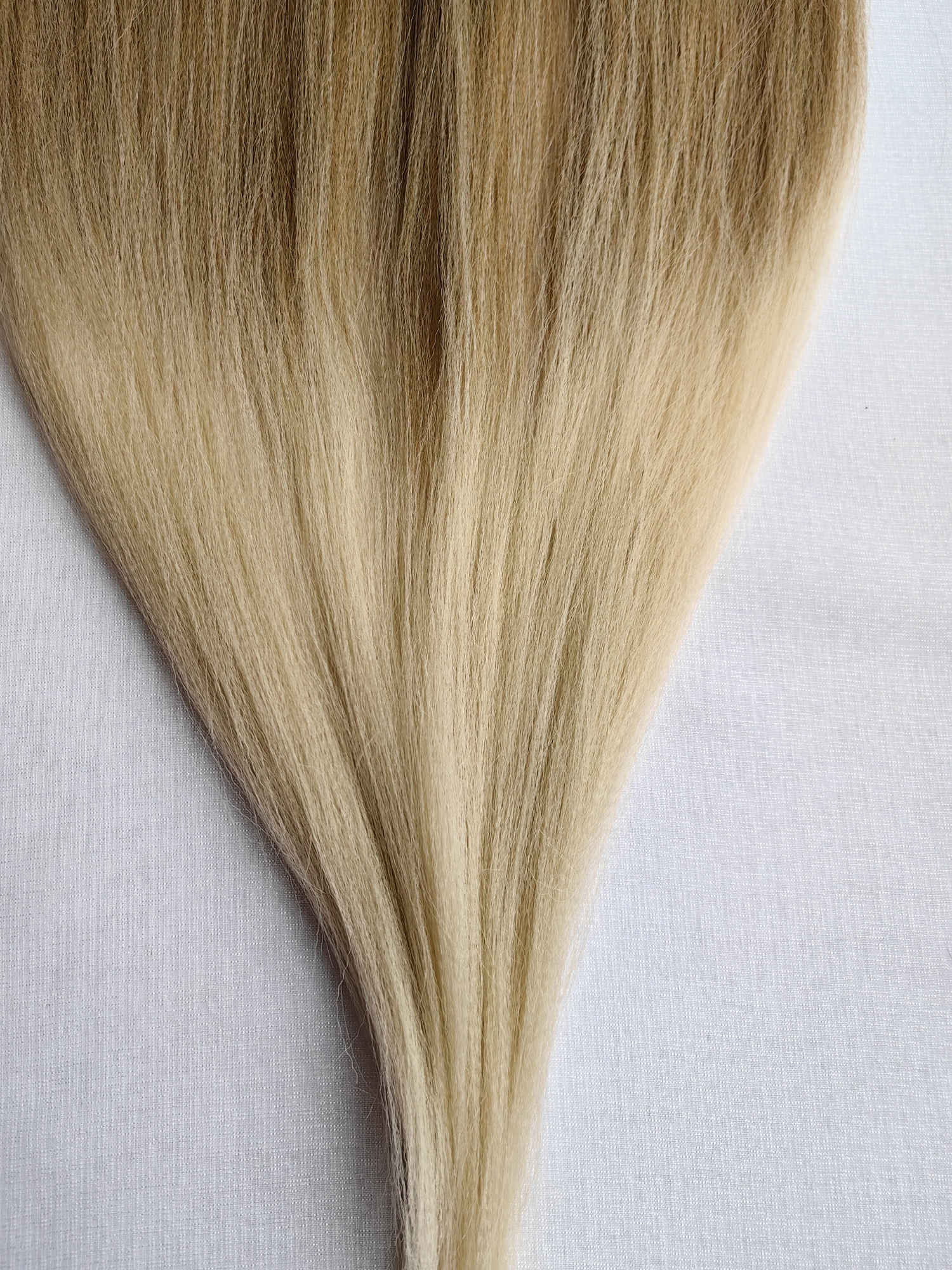 Двойной объем у корней и одинарный на кончике. При заплетении создает тонкий естесственный кончик